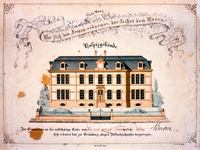 1853 La place de la Mairie par G. EMRICH Grande gouache et encre sur papier, avec rehauts de gomme arabique représentant